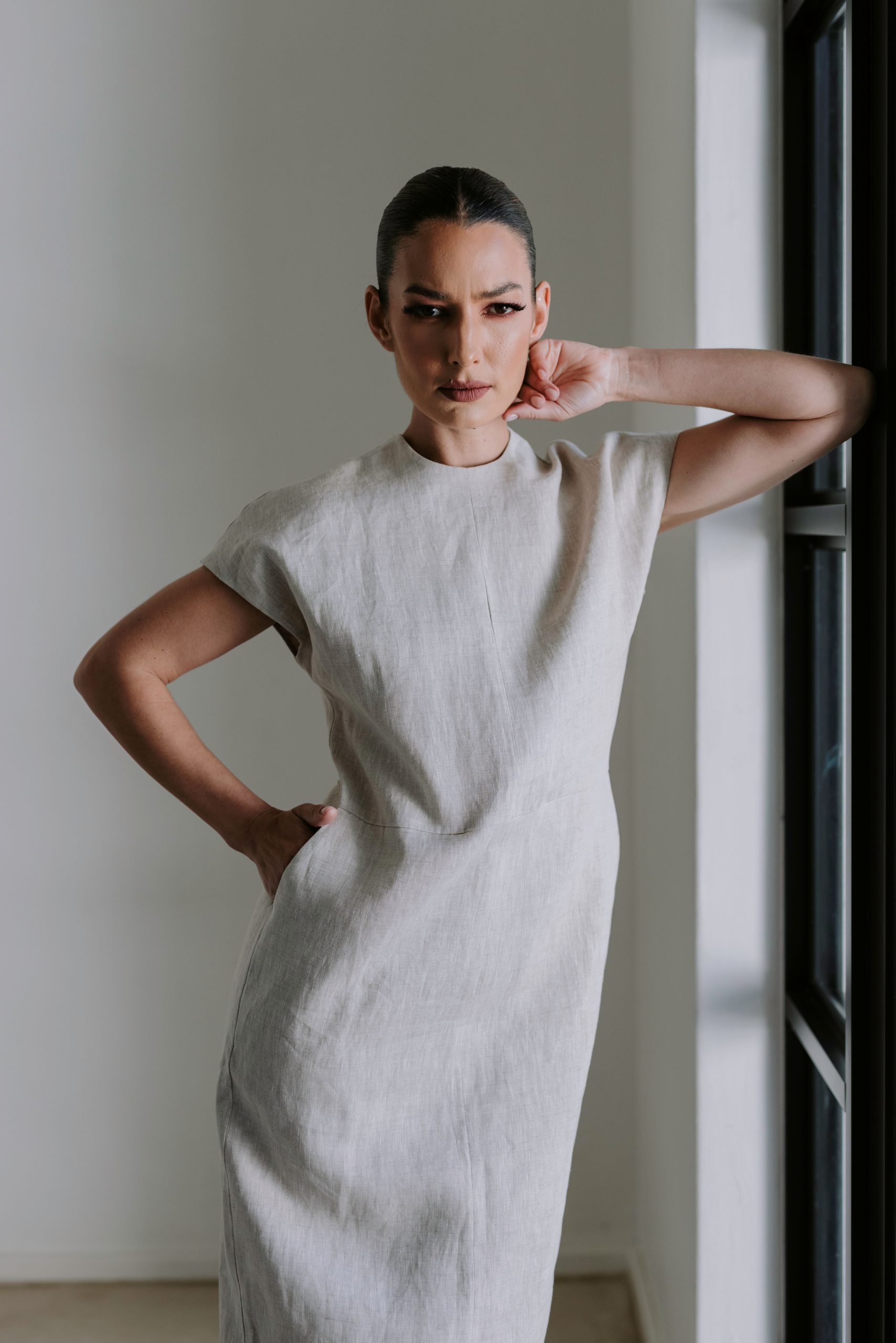 • Classic Midi Dress – Black & Natural: Minimalist, timeless midis in breathable linen blends for everyday ease.